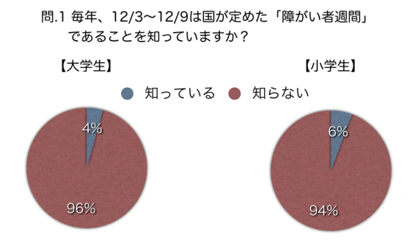 首都圏の大学生・小学生共に、障害者週間の認知度は圧倒的に低く、