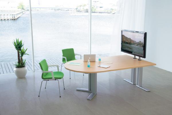 オフィスでのテレビ会議増加を受けて、円滑なコミュニケーションをサポートするテレビスタンド付のテーブルです。