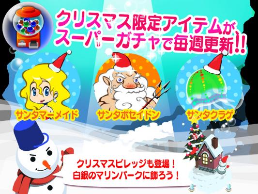 「サンタポセイドン」・「サンタマーメイド」など、クリスマス仕様の高レアなさかな達が毎週スーパーガチャに追加されます。