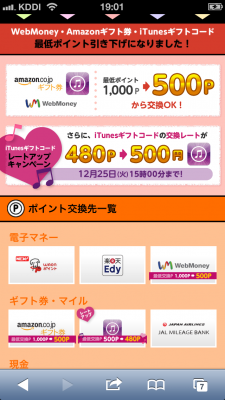 貯まったポイントは、「現金」「電子マネー(楽天Edy、WAONポイント、Suicaポイント、nanacoギフト、WebMoney)」「デジタルコード(iTunesギフトコード、Amazonギフト券)」「ゲームコンテンツ」等にリアルタイムで交換が可能です。今後もより利用価値の高い交換サービスをユーザーに提供することで、ポイント利用の活性化を図ってまいります。