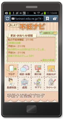 2008年から提供を開始した”初の不妊治療専門公式サイト”である「おしえて!不妊ナビ」は、ユーザーからの不妊に関するあらゆる質問に専門家が答えるコーナー(現在の回答件数:約2,000件)や同じ悩みを持つ仲間と交流できる掲示板やブログ、最新の不妊治療に関する情報の提供等、不妊に悩むカップルに役立つ内容が盛りだくさんのサイトです。