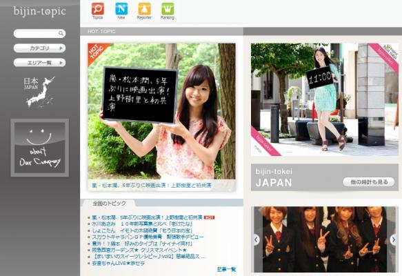 新サービスbijin-topicは、過去美人時計に参加した美人たちがレポーターとして身の回りで起こっている出来事を発信することで閲覧ユーザーに対し、全国の最新トレンドを紹介していくニュースサイトです。