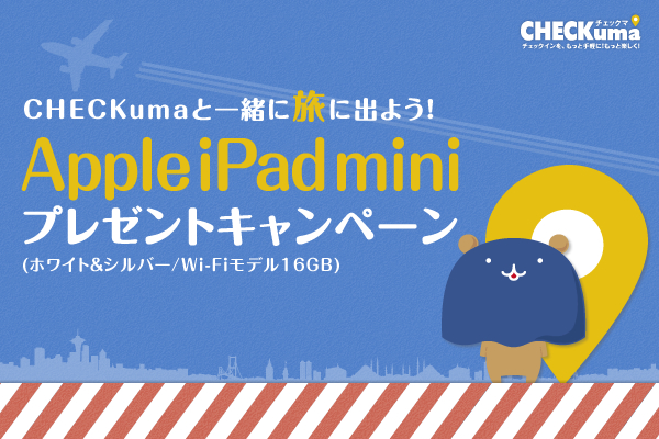 旅先で役立つ「Apple iPad mini(ホワイト&シルバー/Wi-Fiモデル16GB)」をプレゼント致します。