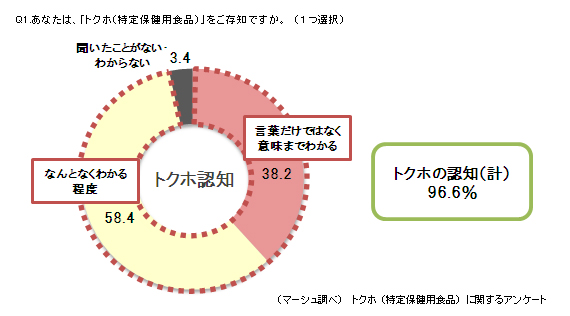 96.6%と、非常に多くの人がトクホの言葉に触れていることがわかる。