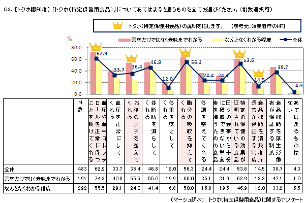 ⇒認知者に対してトクホの説明としてあてはまるものを訊ねたところ、