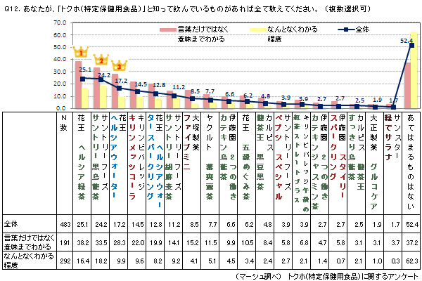 ⇒トクホ認知者に、下記商品の中でトクホと知って飲んでいるものを訊ねたところ、