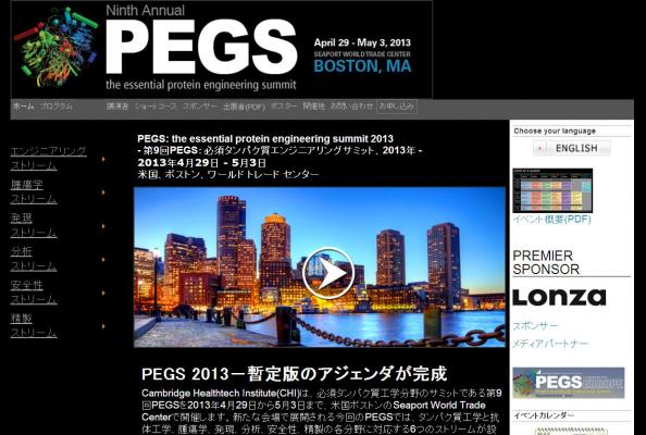 学会:「PEGS: the essential protein engineering summit 2013-第9回 PEGS:必須タンパク質エンジニアリングサミット 2013年-」