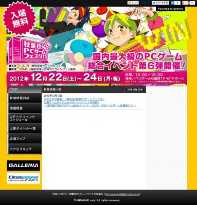株式会社サードウェーブデジノス(取締役社長 : 松野康雄、本社 : 東京都 千代田区)は、2012年12月22日(土)から24日(月・祝)まで、ベルサール秋葉原 において、国内最大級のPCゲーム総合イベント、