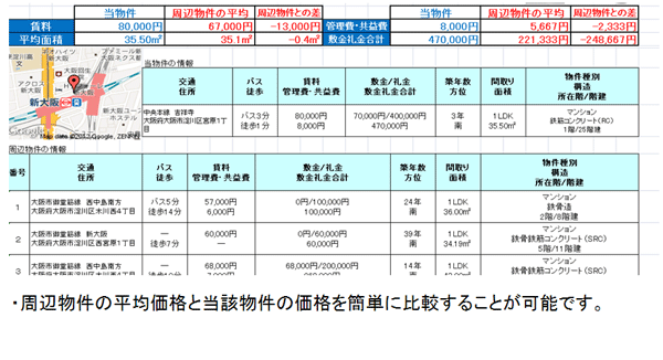 この比較検討により、管理会社様がオーナー様に対して、賃料をもう少しお安くするご提案や、敷金礼金を0円にするメリットをお伝えすることが簡単にできます。