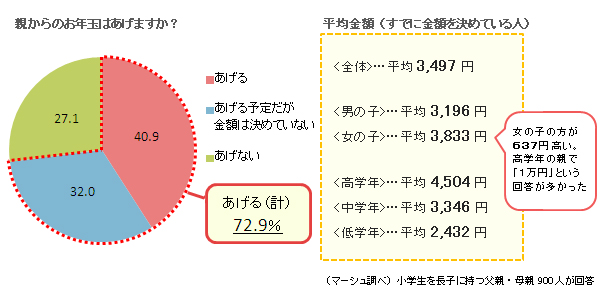 小学生の子どもに親からお年玉をあげる家庭は、約7割という結果に。