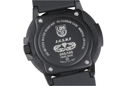 また隊員の声を受け、実践で時計自体を目立たなくする為にダークグリーン・ダークグレーのカラーリングを採用。 更には自己発光システム「ルミノックス・ライト・テクノロジー」のカラーはあえて光量の低いブルーを採用することで、昼夜における実戦において装着した隊員のみが確実に計時できるように施されています。