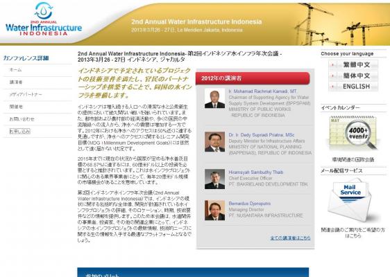 株式会社グローバル インフォメーションでは、皆様の利便性を図る為に、日本語、韓国語、中国語で「2nd Annual Water Infrastructure Indonesia-第2回インドネシア水インフラ年次会議-」の情報を提供するとともに、会議の参加のお申し込みを承っております。