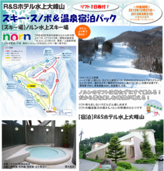 <スキー・スノボ「R&Sホテル水上大峰山」宿泊パック>