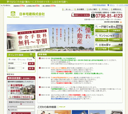 「仲介手数料無料物件」の特集(http://www.nihon-takuken.co.jp/chutemuryo/)
