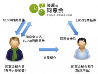 同窓会を開催したい方をご紹介して下さった場合、紹介者と紹介相手に商品券をプレゼントさせて頂きます。