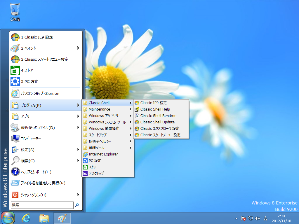 「Classic Shell 3.6.4J」の豊富な機能をまざまざと実感できます。