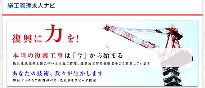 サイト内容: 施工管理技士など建設技術者向け求人情報の掲載(主に震災復興関連)