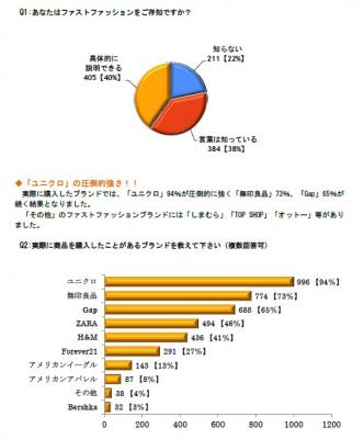 その結果、『ファストファッション』という言葉の認知度は8割近くもあり、9割の方は1年間に1度はファストファッションのブランド店に足を運んでいることが分かる結果となりました。海外のファストファッションが日本に本格進出してから4年経ち、認知度もかなり高くなっているようです。