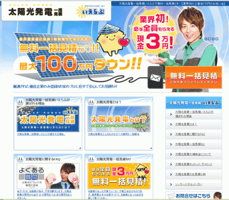 当サイトはお客様に太陽光生活を安心して送って頂ける為の、必要な知識と優良販売業者の情報をご案内します。