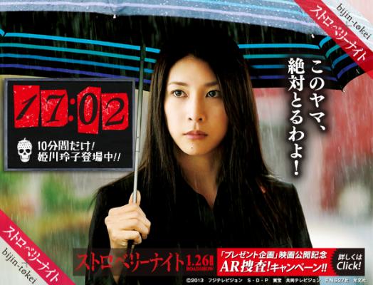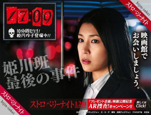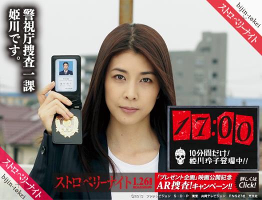 福岡美人時計・姫川玲子の画面のバナーをクリックすれば、映画グッズが当たるキャンペーンページへ。AR捜査に参加すると、映画関連グッズが抽選でもらえます。