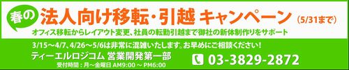 そこで、TLロジコムは、新体制作りを応援する「法人向け移転・引越サービス」キャンペーンを1月から5月まで実施。移転や引越は、なじみのあるサービスですが、同社は、法人向けの豊富な実績・経験から生まれた“現場のアイデア”を随所に盛り込み、他社に比べ高い利便性をお約束します。