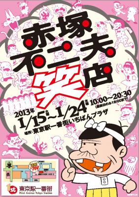 『赤塚不二夫笑店』とは、天才ギャグ漫画家・赤塚不二夫が創り出した強烈なキャラクター達の展示とバラエティに富んだグッズが勢揃いした“笑いある大人が楽しめる”期間限定のショップです。