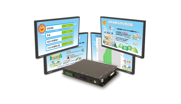 SolarView(R)Compactは、設置場所を問わないスリムな筐体に、太陽電池モジュールの発電電力を計測し、データ表示/保存が行える機能を集約した小型端末です。一般的な計測値・環境コンテンツのほかに任意の画像を最大7画面まで表示できます。また、Webブラウザを使って遠隔地から帳票の閲覧や計測値のダウンロード、パワーコンディショナのモニタリングが行えます。その他、コントローラやハードウェアの異常を示す異常メール通報や計測保存したCSVファイルを外部FTPサーバーに転送する機能を備えています。
