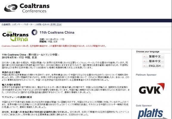 株式会社グローバル インフォメーションでは、皆様の利便性を図る為に、日本語、韓国語、中国語で「11th Coaltrans China -第11回コールトランス中国-」の情報を提供するとともに、会議の参加のお申し込みを承っております。