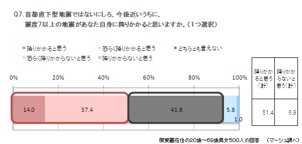 Q7.首都直下型地震ではないにしろ、今後近いうちに、震度7以上の地震があなた自身に降りかかると思いますか。(1つ選択)