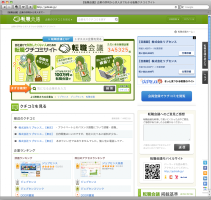 また、2012年5月以降、株式会社キャリアデザインセンター(『@type』を運営)、ソフトバンク・ヒューマンキャピタル株式会社(『イーキャリア』を運営)、株式会社マイナビ(『マイナビ転職』を運営)を始めとする大手求人情報サービス会社と業務提携し、ユーザー会員が求人情報まで閲覧できるよう機能拡充しております。加えて、スマートフォンサイトの開設などユーザビリティの向上に努めてきた結果、この度、会員登録者数※が50万人を突破いたしました。