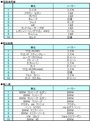 BMWは10位以内に7車種がランクインし、絶好調です。