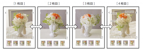 今回の改善により登録画像を最大4枚へ増やし側面からのイメージも表示出来るようになりました。側面からもご覧いただくことで立体感も分かりやすく、画像を参考にアレンジを作って頂くことが容易になりました。今後もアミファは、全てのユーザーへ分かりやいご提案を続けていくことで、プリザーブドフラワー文化のより一層の発展を目指して参ります。