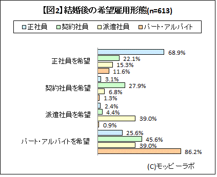 図表参照:【図2】結婚後の希望雇用形態(n=613)