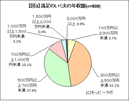 図表参照:【図3】満足のいく夫の年収額(n=808)