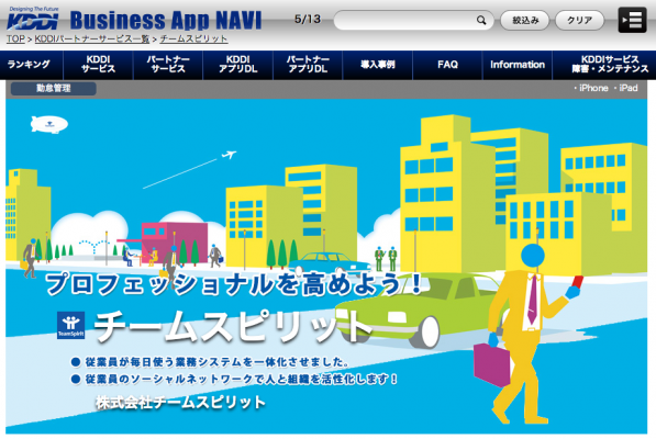 株式会社チームスピリット(本社:東京都千代田区、代表取締役:荻島 浩司)は、KDDI株式会社が運営する「Business Port」にて、2013年1月29日より、ソーシャル・ワークフォースマネジメントを実現するフロントウェア「チームスピリット」のサービス提供を開始します。