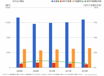 企業の売上推移や資産状態、事業別の売上割合をグラフ表示する機能において