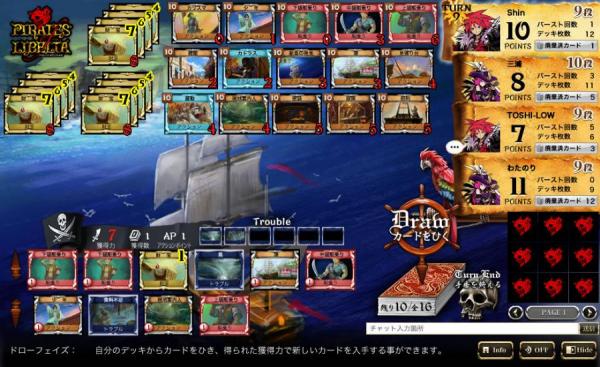 世界的ムーヴメントとなりつつある新興ゲームジャンル「デッキ構築カードゲーム」を本格オンライン化!プレイヤーは自由を愛する海賊として船を駆り、過酷な海を乗り越え、ライバルの船を出し抜いて遥かなる財宝を求めます。