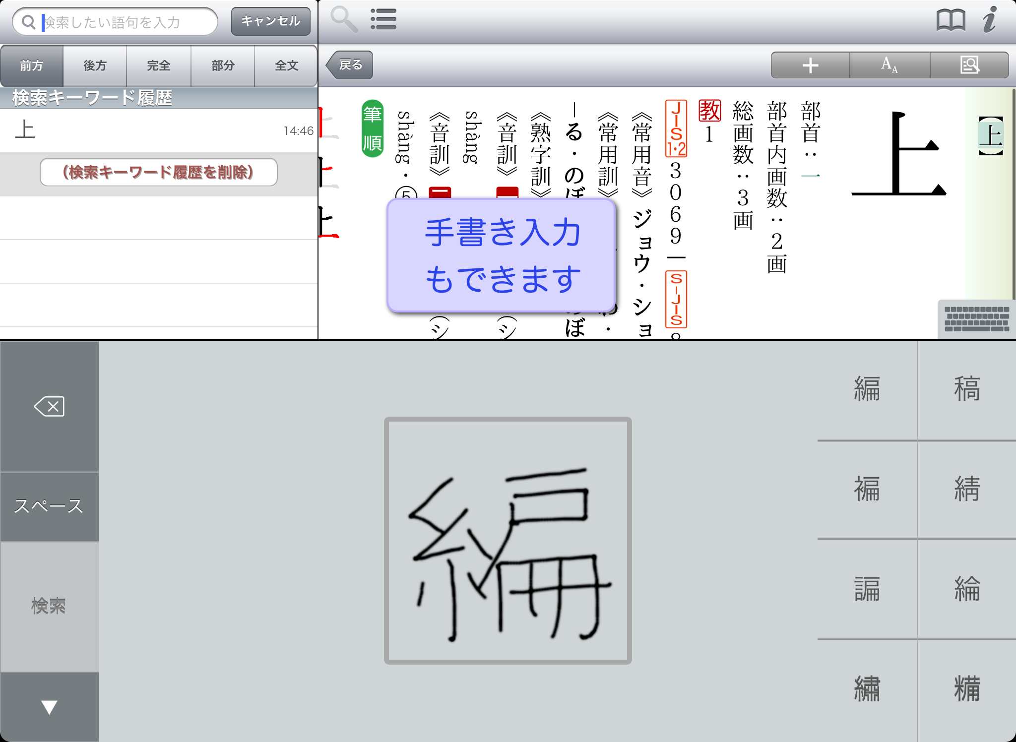 ● 文字を入力すると候補見出し語が表示されるので、うろ覚えでも見つけやすい