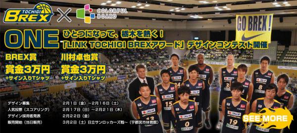 この「LINK TOCHIGI BREX アワード」は、「リンク栃木ブレックス」のファンが一体となり、チームの勝利を後押しする「ONE -ひとつになって、栃木を熱く!」として、応援Tシャツをファンの皆様と一緒に商品企画するものです。