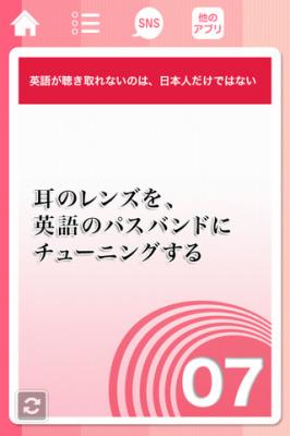 本アプリはAppStoreにて教育カテゴリ1位を5度獲得。10万ダウンロードを突破した『英語聴覚セラピー 奇跡の音』の第二弾です。