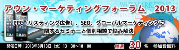 2013年3月13日(水)、「アウン・マーケティングフォーラム2013」を開催いたします。