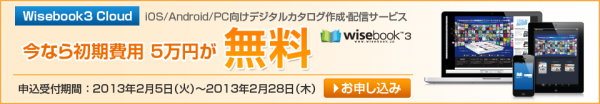 このたび株式会社コベック(本社:東京都新宿区 代表取締役:安 貞善)では、デジタルカタログ作成・配信サービス「Wisebook3 Cloud」の初期費用無料キャンペーンを実施させていただく事となりました。