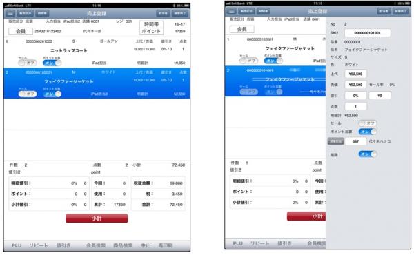 主な機能 :売上登録、取置、ポイントカード、社販、入荷検品、棚卸