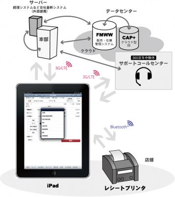 「SmartPOS」は、クラウド型アパレル向け販売管理システム「Fashion Manager World Wide」と連携し、3G回線を利用したリアルタイムでの売上登録のほか、在庫照会、ポイント管理、入荷検品、棚卸等の店頭業務に対応したスマートフォン型POSです。