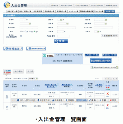 毎月借主様から家賃が銀行に振り込まれますが、その入金の有無・入金額などをデータで簡単に取得することができます。