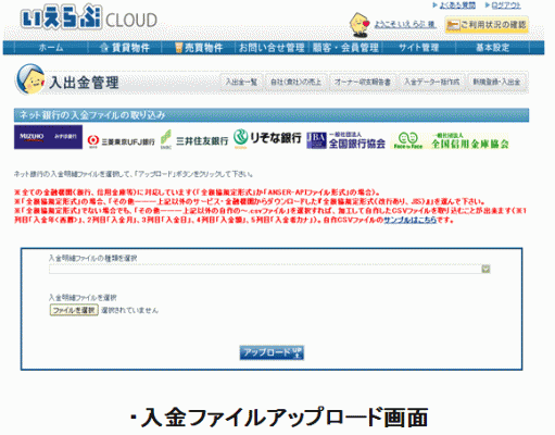 またオーナー様への出金手続きも、1つのファイルのアップロードで完了できます。