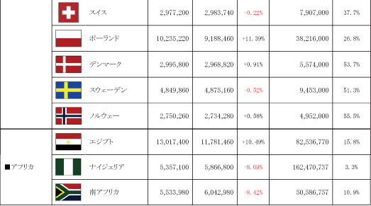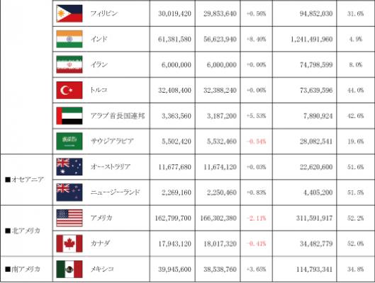 ・ 調査方法 : フェイスブック社が各国に配信できるフェイスブック広告のリーチ数をもとに集計