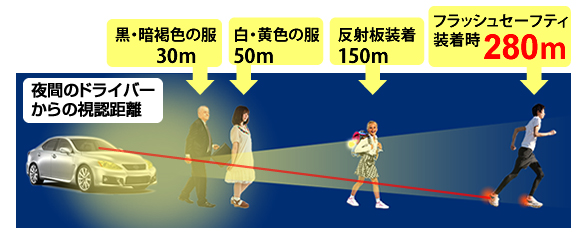 大変危険な夜の事故から身を守るのに大きな力を発揮するのが、LEDライト【フラッシュセーフティ】。