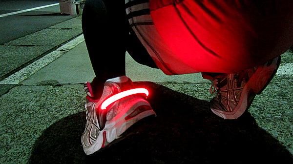 スニーカーの後ろ側に差し込むだけで、夜間時の安全が確保できます。