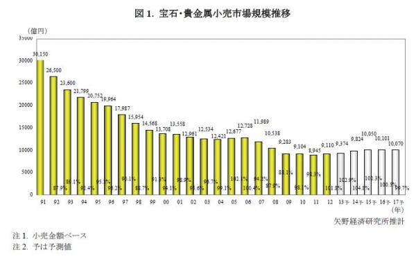 2.調査対象:宝石専門店チェーン、百貨店や時計宝石店および呉服などの異業種宝飾参入企業、インポートジュエリーブランド企業等